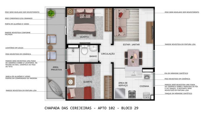 Apartamentos de 2 quartos em uma das regiões valorizadas de Várzea Grande.